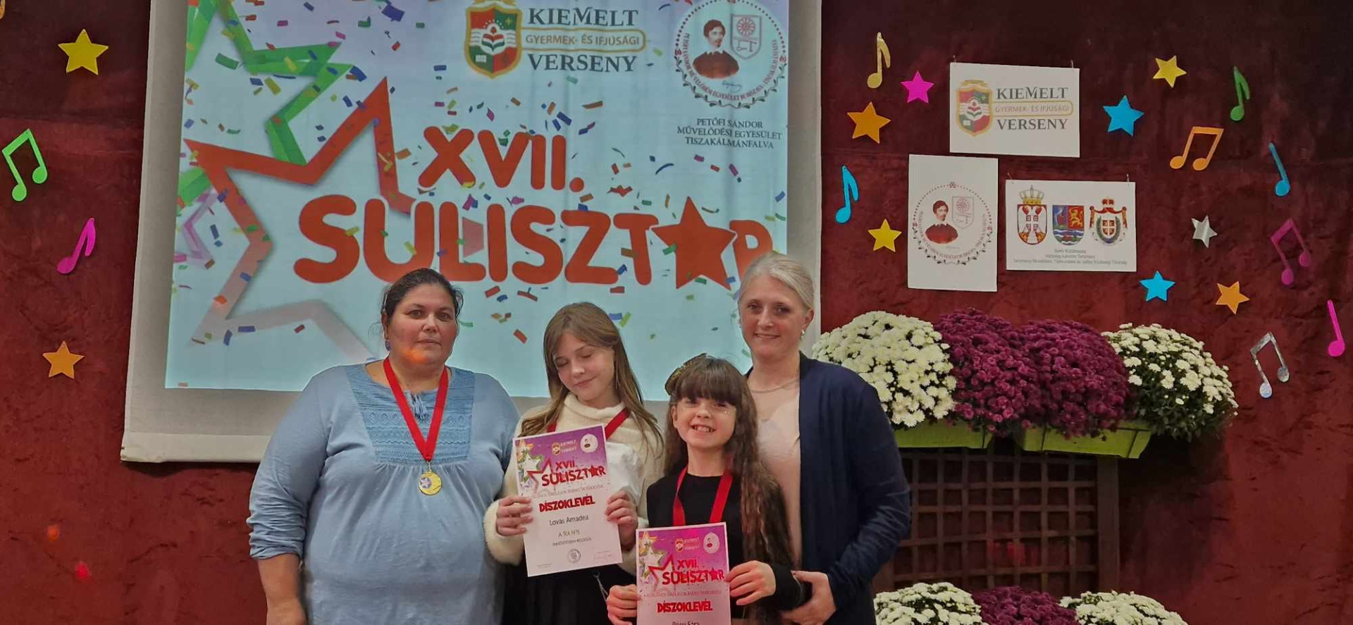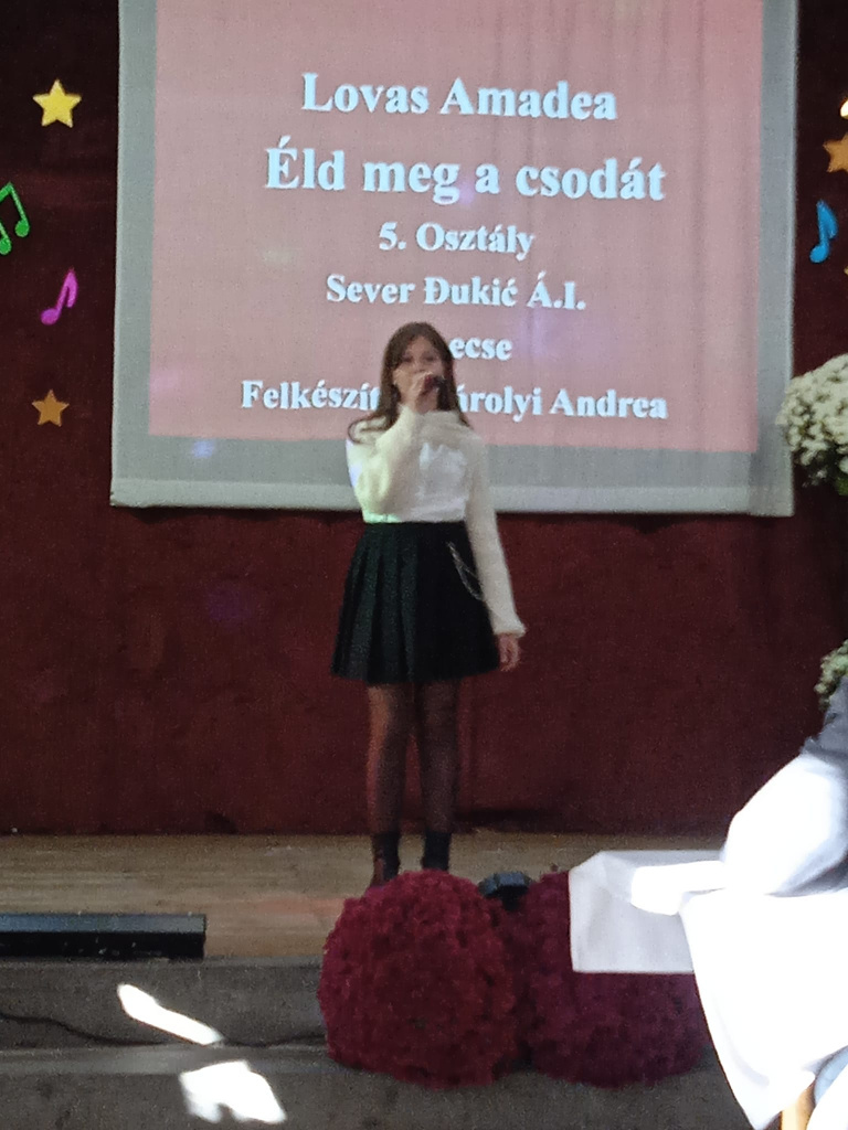 2023. október 28 -án, Tiszakálmánfalva 17.alkalommal adott otthont a Sulisztár elnevezésű énekes-zenés vetélkedőnek, amely immár az MNT kiemelt jelentőségű gyermek- és ifjúsági rendezvényeként szerepel. A megmérettetésre Vajdaság és Magyarország különböző településeiről érkeztek versenyzők. Iskolánk énekesei kiváló eredményt értek el, ugyanis Pécsi Sára, 3.osztály, Lauc Ágota tanítónő tanítványa és Lovas Amadea, 5.osztály,akit Károlyi Andrea zenetanárnő készített fel, egyaránt ARANY MINŐSÍTÉSBEN részesült!