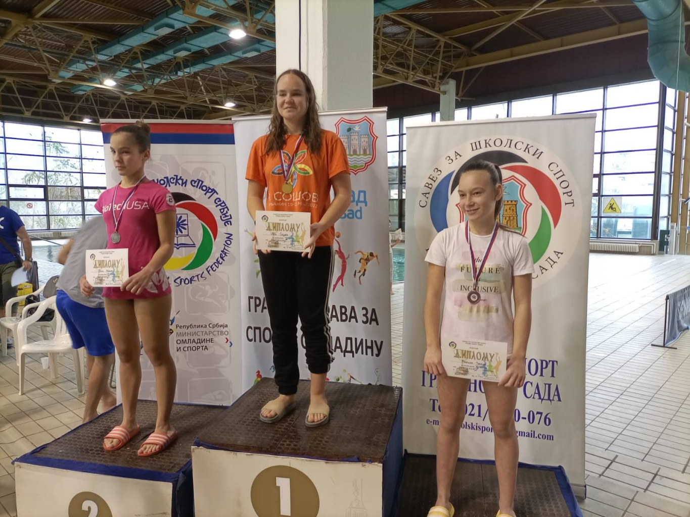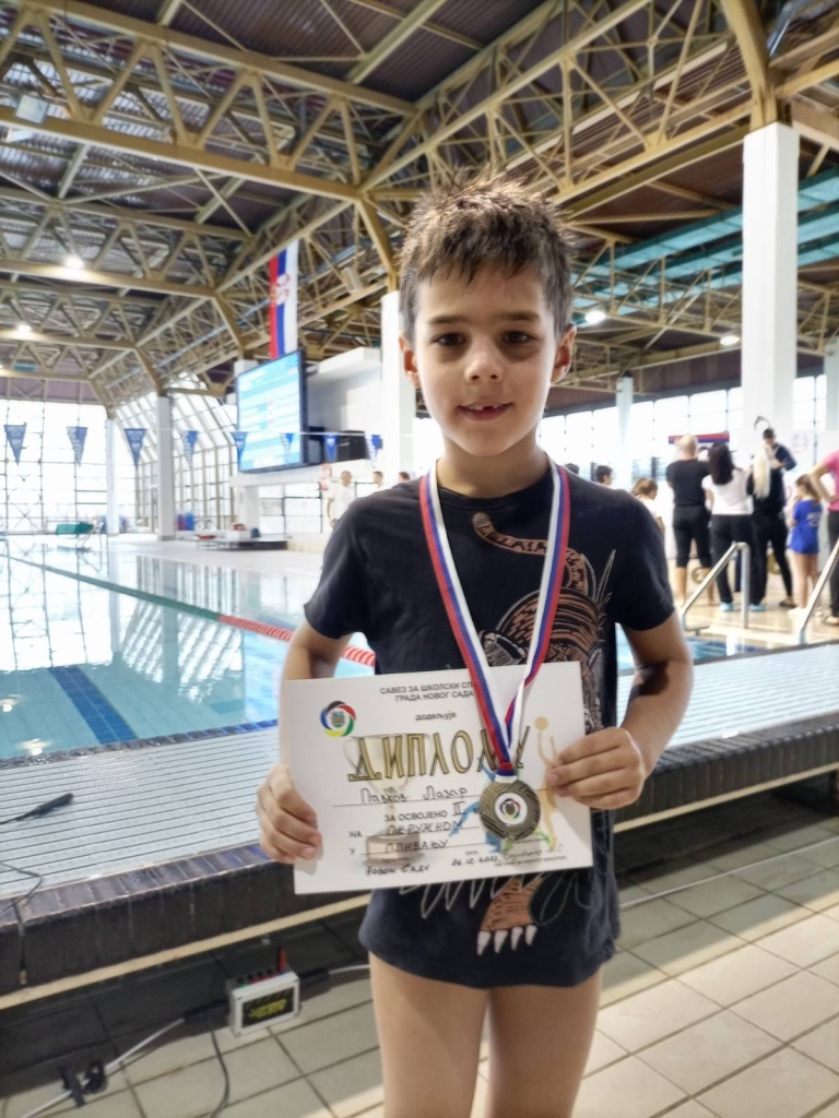 Na okružnom takmičenju iz plivanja, koje je održano 6. decembara 2023. u Novom Sadu, naši učenici su ostvarili izuzetne rezultate: Milica Tarbuk 1.mesto- prsno 50m u kategoriji 3-4. razredi Sara Pavkov 1.mesto- delfin 50m u kategoriji 3-4 razredi Jana Pejić 1.mesto- prsno 50m u kategoriji 7. razredi Dunja Lovčević 1.mesto- leđno 50m u kategoriji 7. razredi Lazar Pavkov 2.mesto- delfin 50m u kategoriji 1-2. razredi Uroš Peslać 2.mesto- kraul 50m u kategoriji 5. razredi Varvara Milićev 2.mesto- kraul 50m u kategoriji 5. razredi Una Zelić 2.mesto- delfin 50m u kategoriji 5. razredi Pavle Dokić 3.mesto- kraul 50m u kategoriji 3-4. razredi Petra Cvijić 3.mesto- kraul 50m u kategoriji 5. razredi Ana Tarbuk 3.mesto- prsno 50m u kategoriji 5.razredi Andrej Tufegdžić 3.mesto- leđno 50m u kategoriji 6. razredi Marina Zelić 3.mesto- delfin 50m u kategoriji 7.razredi Na takmičenju su još učestvovali: Aleksej Orčik, Aleksej Tomašev, Anđela Blagojević, Miladin Jakovljević, Dmitar Mraović.