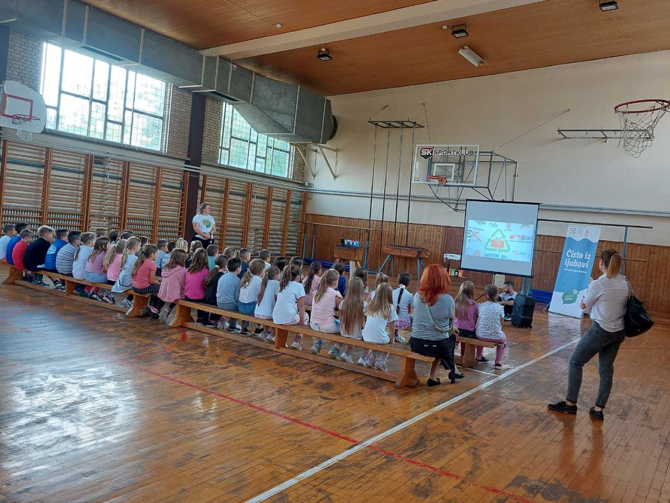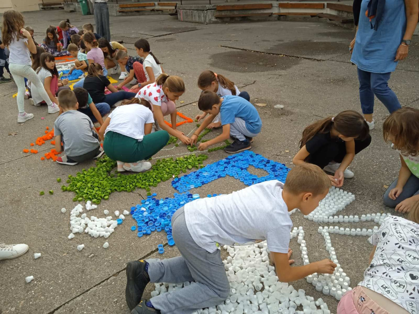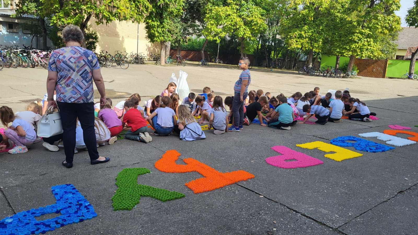 Представници удружења "Чепом до осмеха" одржали су 19.09. едукативну радионицу за наше ђаке. После интерактивне презентације, ученици других и трећих разреда су у дворишту школе од пластичних чепова правили мозаик. Радовали смо се овом лепом дружењу!