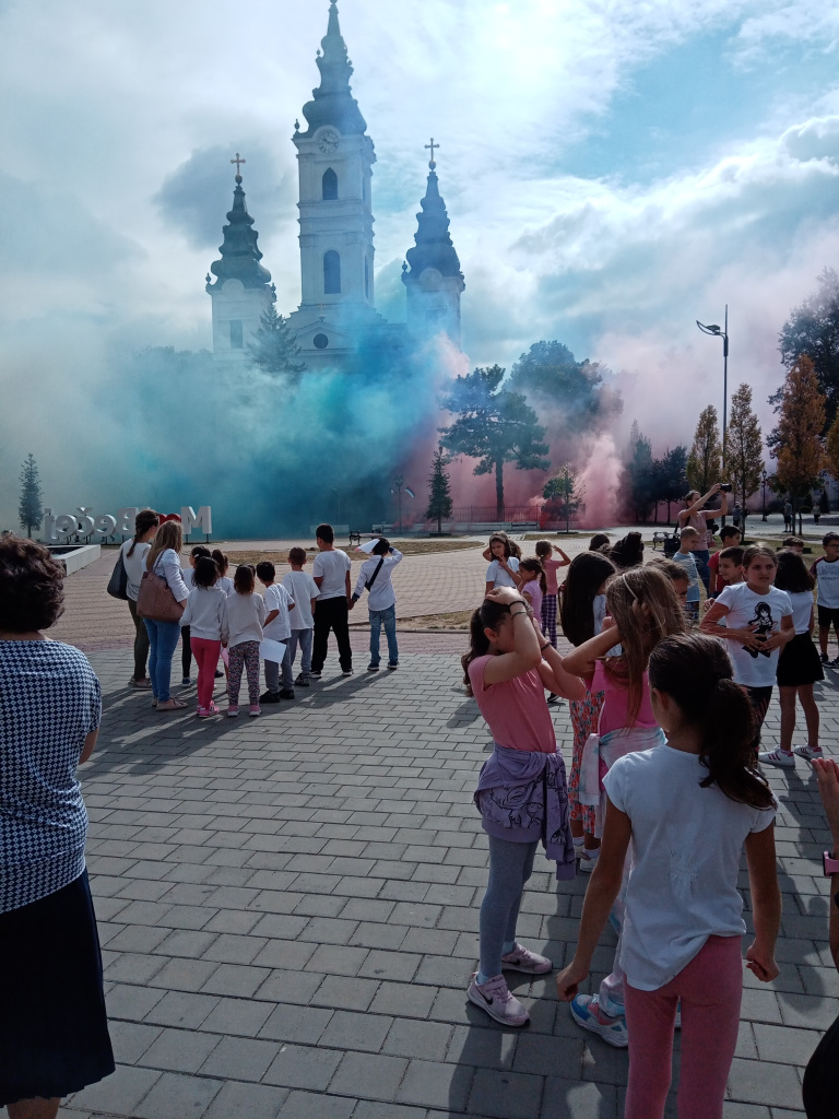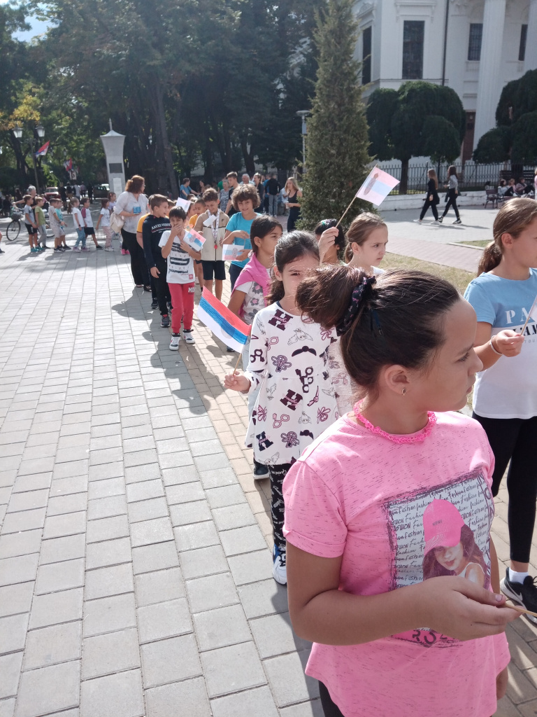 Ученици III и IV разреда наше школе су обележили Дан српског јединства, слободе и националне заставе на Тргу ослобођења, испред СО Бечеј, 15. септембра.